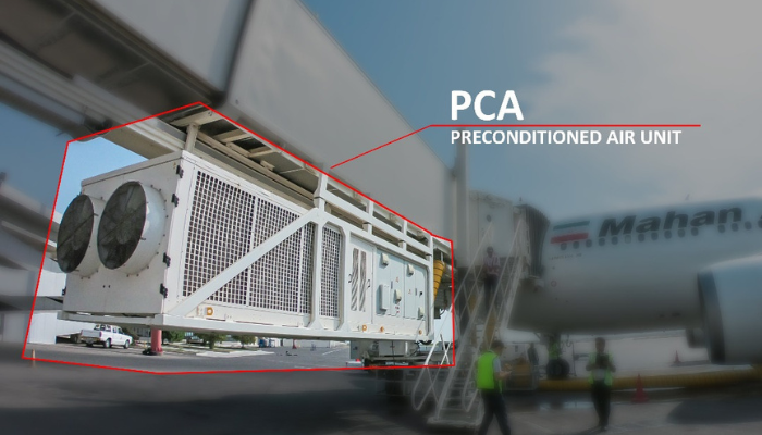 A Pre-Conditioned Air (PCA) system supplies temperature-controlled, filtered air to an aircraft while parked, maintaining a comfortable cabin environment for passengers and crew without using the aircraft's engines or auxiliary power units (APUs). By delivering fresh, conditioned air directly to the aircraft, PCA units help sustain cabin comfort and reduce fuel consumption on the ground.