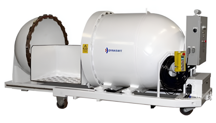 A Threat Containment Vessel (TCV) is a specialized security container used in airports and high-security environments to safely manage potential threats, such as explosives or hazardous materials, during screening processes. Also known as Mobile Explosive Containment Vessels (MECVs), TCVs are essential tools for bomb technicians and Explosive Ordnance Disposal (EOD) teams. Designed for durability, TCVs can withstand multiple detonations while containing flying shrapnel and blast pressure. Their lightweight and portable design allows for easy transport throughout the airport, including access via elevators.